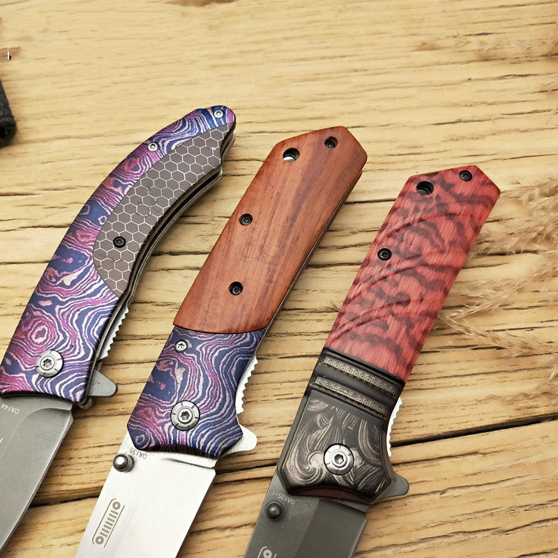 WOODBLADE™ – Canivete Dobravel Tático com Acabamento Premium em Madeira Natural