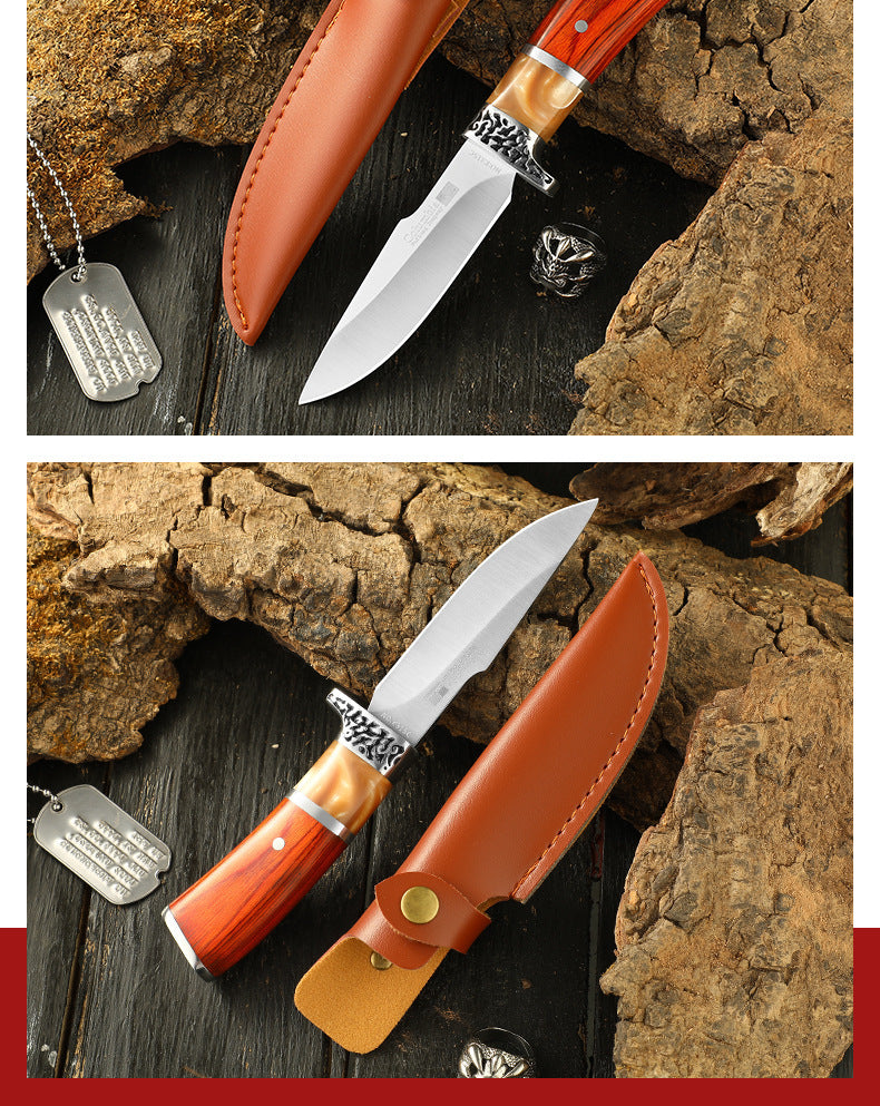 TERRAEDGE™ - Faca de Sobrevivência com Cabo em Madeira Nobre & Estojo em Couro